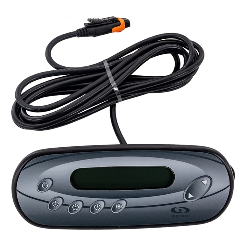 The Gecko K450-30P-25 topside features an LCD display that shows water temperature and includes seven buttons to control the spas functions. It is equipped with a 25' cord and replaces older K400 keypads.